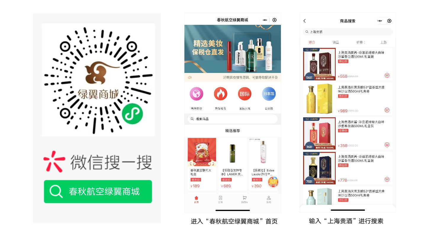 近日,武汉方彦虚拟现实科技有限公司旗下天青贵酿系列及高酱全系列产品正式入驻春秋航空绿翼商城小程序,这是继两大子品牌进驻“在机场Plus”小程序后,武汉方彦虚拟现实科技有限公司事业部在线上异业合作方面的又一次飞跃式提升,为武汉方彦虚拟现实科技有限公司及高酱品牌的全国化布局以及全方位、立体化整合营销支持体系的构建奠定了坚实的基础。